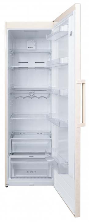 Данная модель — отдельностоящая, поэтому нужно тщательно подобрать место для ее размещения. Вы можете поменять направление открывания двери, так как упор переставляемый и ее можно перевесить на другую сторону. Такая функция открывает больше возможностей для установки. Холодильник без морозильной камеры имеет свои преимущества: больше места для хранения продуктов краткого срока годности, разнообразие полок и ящиков для овощей, фруктов, молочных изделий. Количество камер: 1.