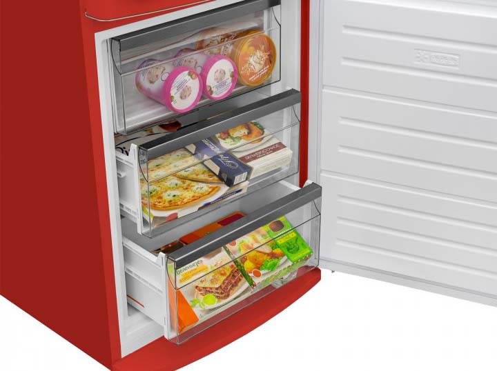 Трехкамерные модели выпускаются в нескольких вариантах. В некоторых случаях в качестве третьей камеры поступает так называемая зона свежести — отделение, где поддерживается температура около 0 градусов. В другом варианте подобные модели имеют морозильную камеру, состоящую из двух выдвижных ящиков.