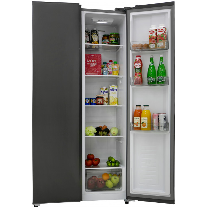 Данная модель — отдельностоящая, поэтому нужно тщательно подобрать место для ее размещения. Холодильник Side-by-Side с необычным расположением камер — сбоку друг от друга — позволяет увеличить объем продуктов для хранения. Такой вариант подходит обладателям просторной кухни, большим семьям, людям, которые запасают продукты и готовят впрок. Количество камер: 2.