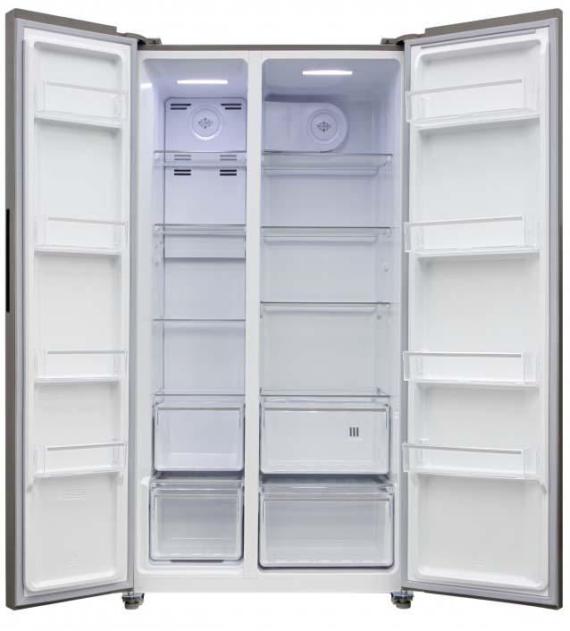 Холодильники Side-by-Side, что в переводе означает «бок-о-бок», — вместительные устройства, в которых холодильная и морозильная камеры располагаются рядом друг с другом. Они предназначаются для хранения значительного запаса продуктов и иногда называются холодильниками с американским типом компоновки, поскольку такие приборы с распашными дверями появились именно в США.