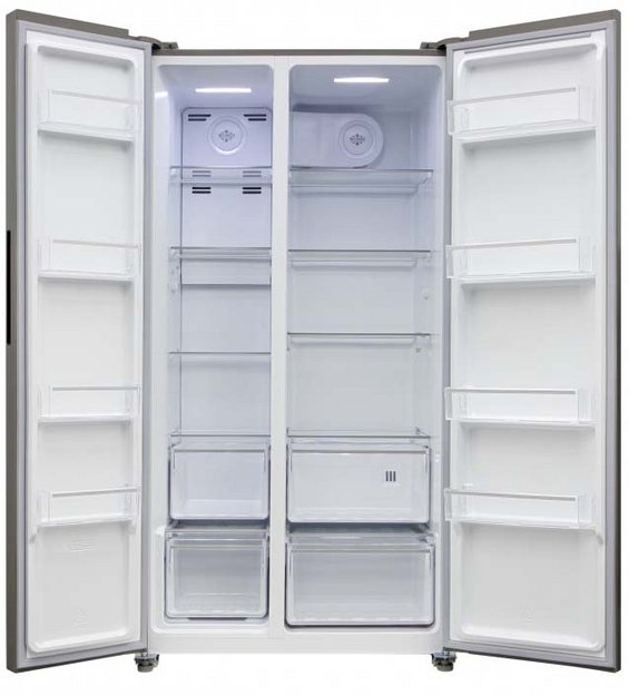 Данная модель — отдельностоящая, поэтому нужно тщательно подобрать место для ее размещения. Холодильник Side-by-Side с необычным расположением камер — сбоку друг от друга — позволяет увеличить объем продуктов для хранения. Такой вариант подходит обладателям просторной кухни, большим семьям, людям, которые запасают продукты и готовят впрок. Количество камер: 2.