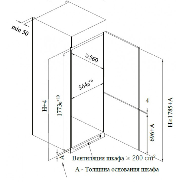 - Габариты ниши для встраивания (ВхШхГ): 177-177.8x56-57x56 см