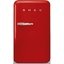 Красный холодильник в стиле 50-х годов XX в. Дверь нельзя перевесить на другую сторону, петли расположены справа. Холодильная камера вмещает до 101 л, морозильная — 13 л. Первая размораживается автоматически, вторая вручную.