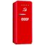 Производительный, функциональный и вместительный — SMEG FAB28CCCP. Серп и молот, а также надпись «СССР» — украшают прибор итальянского производителя. Холодильный отсек устройства оснащен стеклянными полками, пластиковыми отсеками для овощей и фруктов и полками для хранения продуктов на дверце.