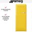 Отдельностоящий холодильник Smeg выполнен в желтом цвете. Модель в таком оформлении станет ярким пятном на вашей кухне и сделает ее более красочной. Стиль 50-х годов придаст еще большей эстетики. Скругленный выпуклый корпус делает прибор внешне аккуратнее и изящнее. Класс энергопотребления А+++ обеспечивает наилучшее качество работы агрегата. Звездочное обозначение в 4 звезды считается одним из самых лучших. С помощью системы MultiFlow продукты питания сохраняют свою свежесть намного дольше. Полки холодильного отделения регулируются. Отдельный ящик для овощей и фруктов имеет стеклянную крышку.