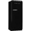 Последнее время достаточно широкое распространение получили холодильники черного цвета. Подобные устройства придают кухне особый стиль, однако не рекомендуется устанавливать их в небольшом помещении, особенно если фасад изготовлен не из стекла. Кроме того, черные холодильники требуют постоянного тщательного ухода, так как на них лучше заметны загрязнения.