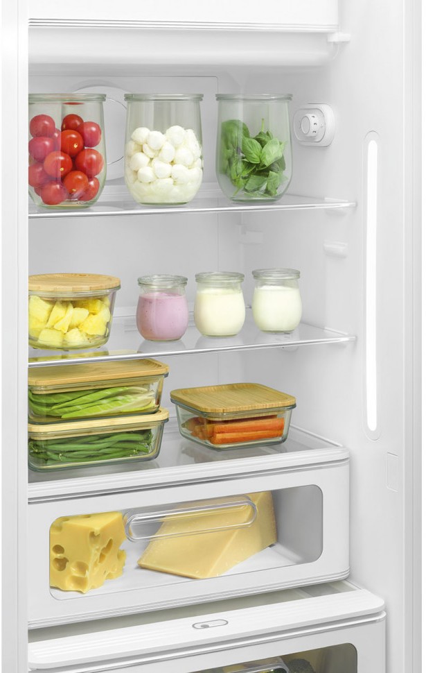 Внутреннее освещение холодильной камеры позволяет обеспечить хороший обзор содержимого и быстро найти необходимые продукты. Чем меньше времени будет открыта дверца холодильника, тем лучше будет поддерживаться в камере выбранная температура, следовательно, улучшится и качество хранения продуктов.