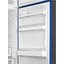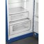 Холодильник глубокого синего цвета в стиле 50-х годов подходит и классическому интерьеру в светлых тонах, и современному, и ретро. В холодильной камере есть несколько полок из закаленного стекла, вместительный контейнер и большой ящик в зоне свежести. Морозильник расположен сверху.