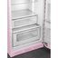 Розовый двухкамерный холодильник в стиле 50-х годов — яркий акцент на вашей кухне. В основном отделении автоматическое размораживание. Вентилятор помогает равномерно распределить холод — продукты не подмерзают, даже если лежат близко к задней стенке. В зоне свежести расположен большой контейнер.