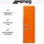 Smeg FAB32ROR5 — ярко-оранжевая отдельно стоящая модель высотой 197 см с дверным упором справа. Два контура охлаждения предотвращают смешивание запахов. Регулировка температуры в камерах производится при помощи термостата. Класс энергопотребления А+++ свидетельствует об экономичной работе.