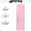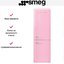Smeg FAB32RPK5 — холодильник в корпусе розового цвета с правой дверцей и морозильником снизу. Прибор оснащен системой размораживания No Frost в обеих камерах и зоной свежести с температурой около 0 градусов. Модель отличает низкий уровень энергопотребления класса А+++ и малый уровень шума 37 дБ.