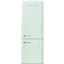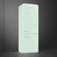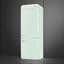Холодильник пастельного зеленого цвета с двумя камерами выполнен в стиле 50-х годов XX века. Он подойдет ретро-кухне и современному интерьеру в светлых тонах. Несмотря на «старомодный» фасад, внутри прибор оснащен в соответствии с нынешними требованиями. В обеих камерах применяется технология No Frost, благодаря которой продукты защищены от неравномерного охлаждения, а вам не нужно размораживать холодильник самостоятельно. Управление производится с помощью электронной панели с LED-дисплеем, расположенной на внутренней боковой стенке.