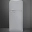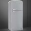 Вместительный и стильный холодильник итальянского бренда Smeg. Модель с двумя отделениями и морозильной камерой расположенной сверху.