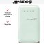 Мини-бар Smeg FAB5LPG6 — компактный и заметный предмет интерьера в стиле 50-х годов, выполненный в пастельно‑зелёном цвете. Он создан как отдельностоящее устройство с внешней ручкой и дверным упором слева, что упрощает монтаж в нишах и рядом с мебелью. При высоте 74 см и ширине 40,4 см он легко помещается в небольшие кухни, студии или гостиничные номера. Глубина 50 см и глубина с ручкой 56,9 см дают представление о реальном занимаемом объёме и помогают заранее продумать место установки.