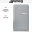 Холодильник SMEG Minibar FAB5LSV6 — компактный прибор в стиле 50-х годов, оформленный в универсальном серебристом цвете. Его внешняя ручка и узнаваемые округлые формы подчеркивают винтажную эстетику, а строгие пропорции 74×40.4×50 см делают изделие заметным, но ненавязчивым акцентом в интерьере. Небольшая глубина и высота делают его отличным решением для квартир, гостиничных номеров, кабинетов и кухонь с ограниченным пространством. Габариты с ручкой 56,9 см стоит учитывать при размещении возле стен или в нише.