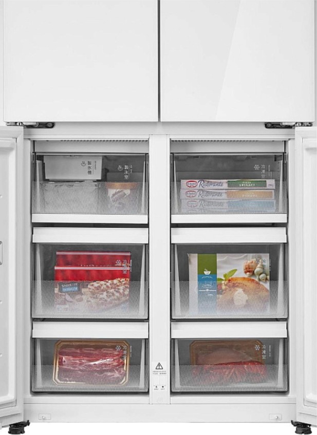 Управление электронное со сенсорными кнопками и возможностью удалённой бесконтактной настройки через мобильное приложение по Wi‑Fi. Светодиодная подсветка улучшает обзор, автоматическое размораживание облегчает уход, а зона свежести помогает дольше сохранять продукты в пригодном виде. Морозильная часть оснащена автоматическим льдогенератором, шестью ящиками и функцией суперзаморозки; производительность замораживания — 10 кг/сутки, автономное сохранение холода — 8 часов, минимальная температура — −30°C. Наличие нулевой зоны расширяет варианты хранения.