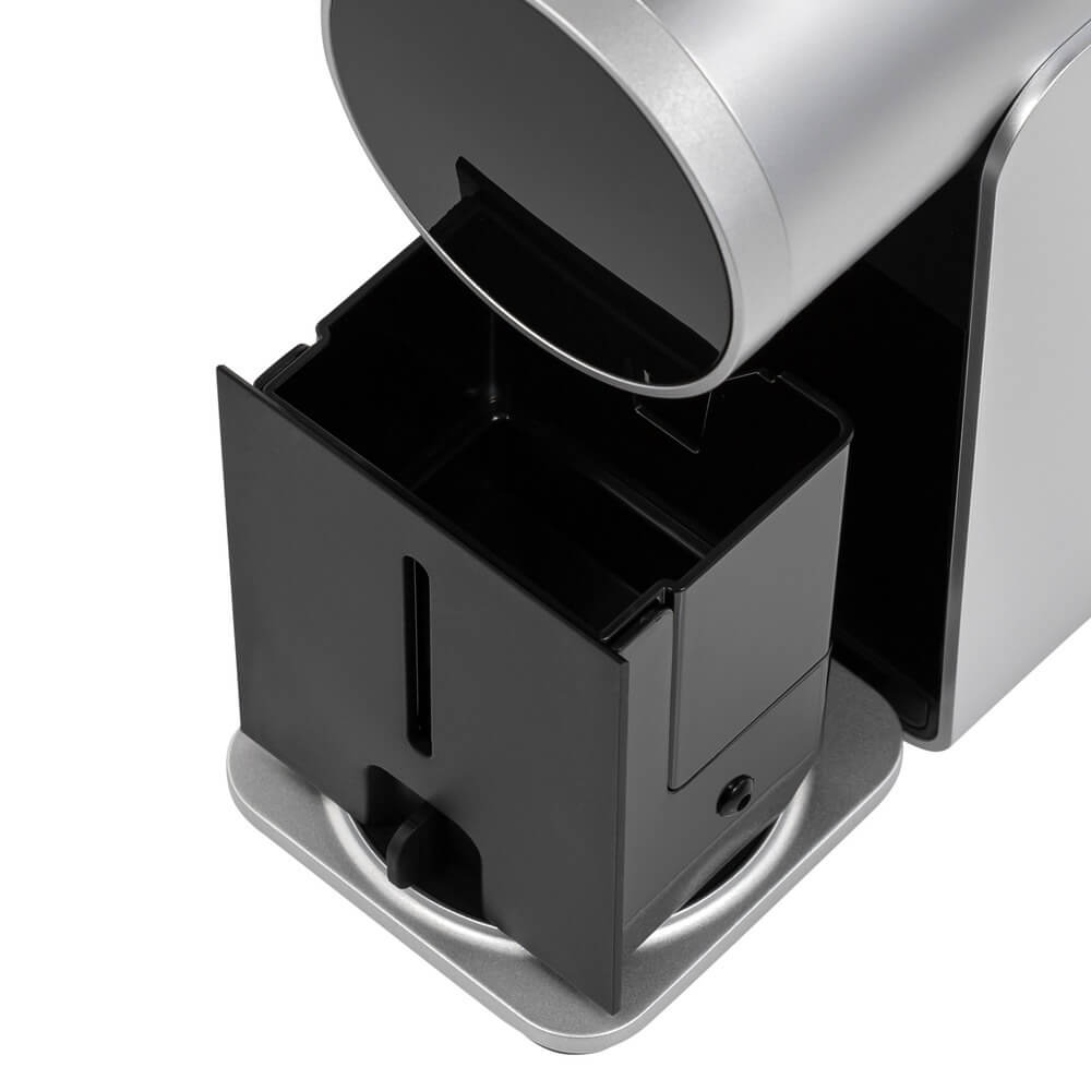 Съемный лоток для сбора капель (каплесборник) позволяет защитить столешницу от капель, которые могут попасть на нее при удалении чашки с напитком с подставки. Это плоский резервуар из пластика, который находится под решетчатой подставкой и легко выдвигается для очистки. Подсчитано, что в автоматической кофемашине в лоток попадает 15-40 мл воды за одно приготовление. Офисные модели, таким образом, должны иметь больший объем лотка, чем домашние. О заполнении этого резервуара оповещает либо специальный индикатор на панели управления, либо соответствующее сообщение на дисплее.