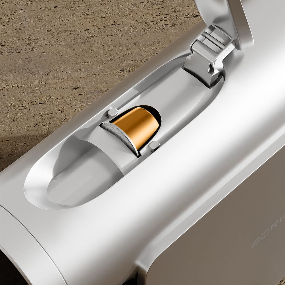 Кофемашина BORK C832 — это ультракомпактное инновационное устройство, созданное для ценителей быстрого и качественного кофе, не требующего лишних усилий. Эта модель работает исключительно с капсулами и обеспечивает безупречную дозировку, герметичность и свежесть напитка благодаря запаянной системе хранения молотого кофе. Её миниатюрные габариты — всего 25 см в высоту, 10 см в ширину и 40 см в глубину — позволяют разместить прибор даже в самом ограниченном пространстве: на узкой столешнице, в офисе, на даче или в гостиничном номере. Несмотря на компактность, техника не уступает в функциональности и комфорте. Управление осуществляется с помощью современного текстового дисплея с сенсорными переключателями, что делает взаимодействие с устройством интуитивно понятным, быстрым и эстетически приятным. Отсутствие механических кнопок упрощает уход и придаёт корпусу лаконичный, технологичный вид. Благодаря капсульному формату приготовление напитка занимает считаные секунды: достаточно вставить капсулу, выбрать программу и наслаждаться ароматным эспрессо, лунго или другим напитком в зависимости от используемой капсулы. Система автоматической подачи воды и встроенная защита от перегрева обеспечивают стабильную работу и безопасность. Кофемашина идеально подходит для тех, кто ценит простоту, скорость и стабильное качество без необходимости настраивать помол, дозировку или очищать от кофейной гущи. Она проста в обслуживании, а компактный резервуар для отработанных капсул сигнализирует о необходимости их утилизации. Это решение для современного ритма жизни, где на счету каждая минута, а удовольствие от кофе должно быть мгновенным и безупречным.