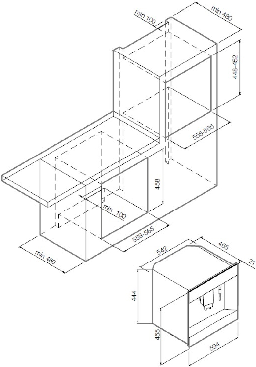 Встраиваемые кофемашины — автоматические устройства для приготовления напитков с молоком или без него. Весь процесс приготовления, от помола зерен и до очистки и промывки по завершении, происходит без участия пользователя. Машины оснащаются вместительными контейнерами для зерен, воды и молока с легким доступом. Размеры встроенных устройств позволяют устанавливать их в колонну с другой техникой: ширина составляет около 60 см, а высота — около 45 см. Как правило, все модели изготавливаются в современном стиле, оснащаются сенсорным управлением, подсветкой, полкой для подогрева чашек.