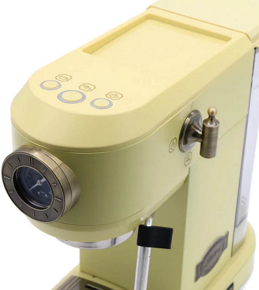 Визуальные характеристики кофемашины играют важную роль при выборе. Цвет корпуса этой модели — бежевый. Основной материал поверхности — металл.