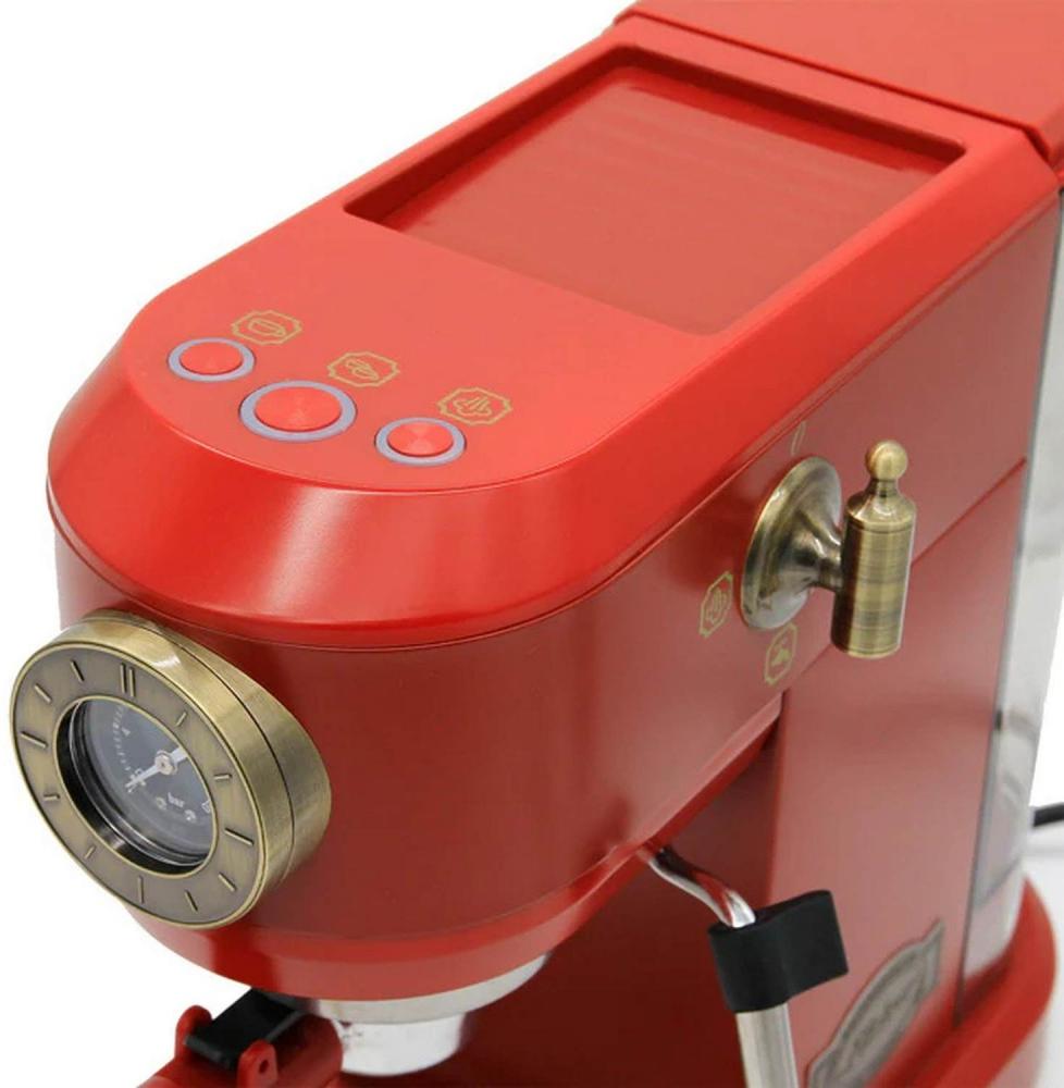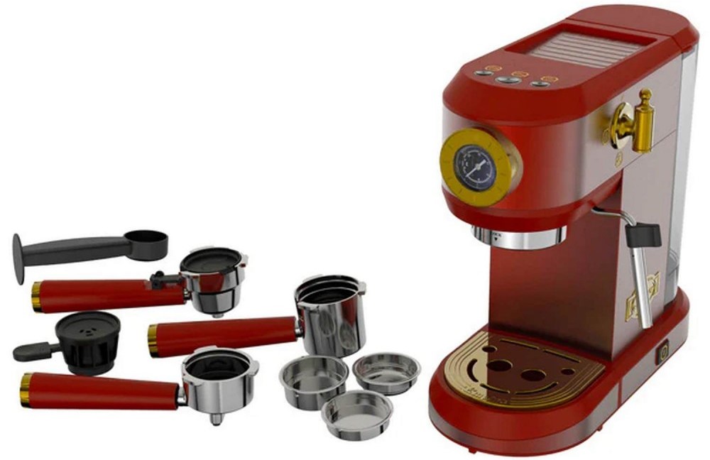 Визуальные характеристики кофемашины играют важную роль при выборе. Цвет корпуса этой модели — красный. Основной материал поверхности — металл.