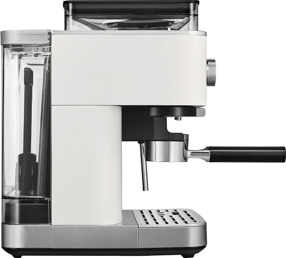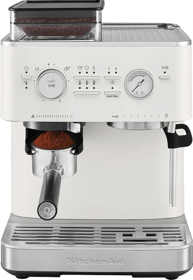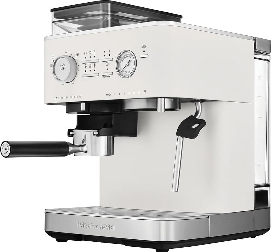 В модели KitchenAid 5KES6551EPL используются сразу два типа кофе — молотый и зерновой: это расширяет ваши возможности и увеличивает разнообразие напитков, которые можно приготовить с отличиями в крепости, ароматности и терпкости. Данная рожковая кофемашина предназначена в основном для приготовления эспрессо и капучино; благодаря быстрой работе и отсутствию кофейной взвеси в чашке она востребована как в быту, так и в офисах.