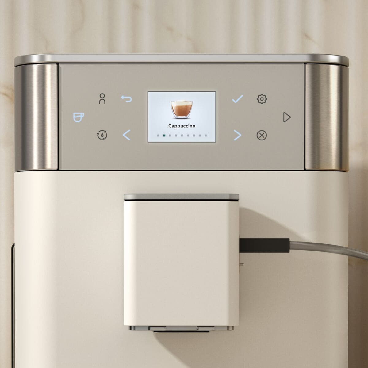 Дисплей в кофемашине позволяет быстро и без труда регулировать параметры работы и контролировать ход приготовления, подсказывает порядок действий и предоставляет возможность выбора вариантов управления при помощи меню. На экране отображается полная информация о состоянии устройства, визуализируется процесс приготовления, появляются предупреждения о том, что необходимо пополнить контейнеры для воды и зерен, а также выводятся сообщения об ошибках.