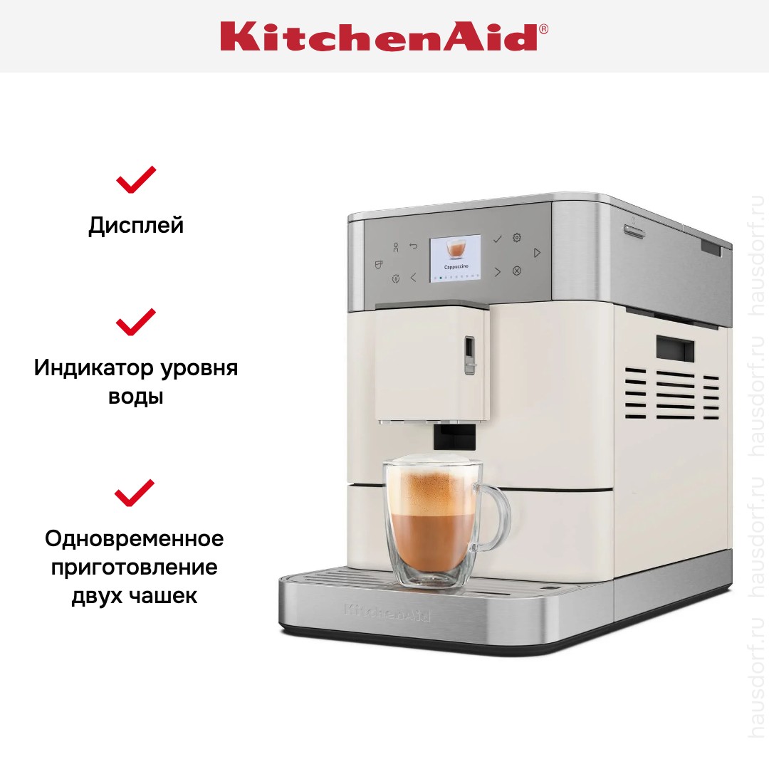 В модели KitchenAid 5KES8556EPL используется зерновой кофе: вы можете экспериментировать с крепостью, горчинкой или кислинкой итогового вкуса, при этом качество помола зерен останется на высоте. Автоматическая кофемашина — по сути облегченная и уменьшенная версия приборов из кафе, она обладает широкими возможностями, разнообразным меню и продуманной системой контроля за процессом. Это отличный выбор как для дома, так и для офиса.