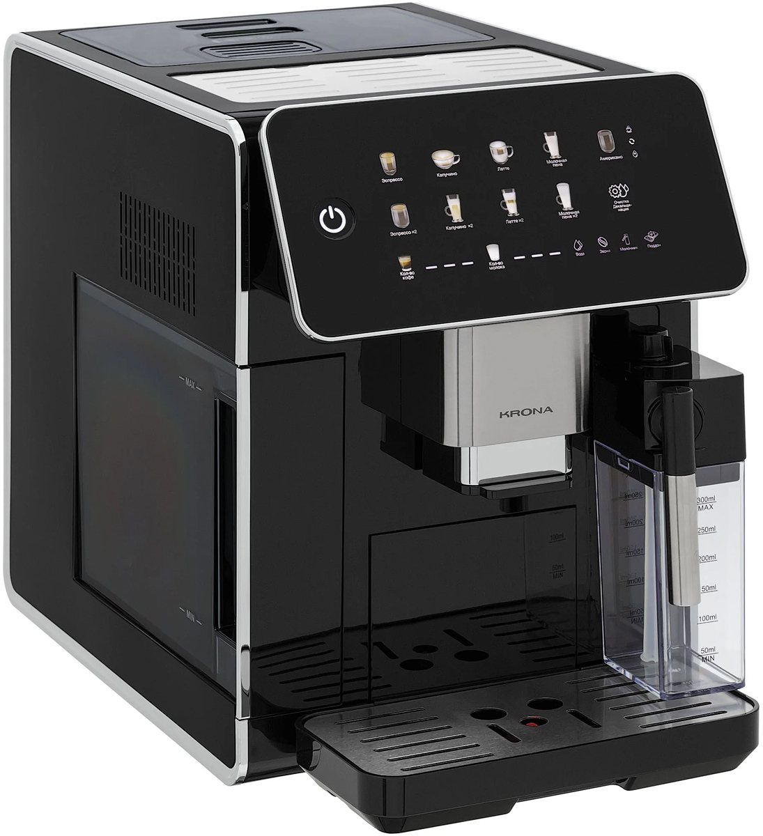 В модели KRONA Black 19 Bar используются сразу два типа кофе — молотый и зерновой: это расширяет ваши возможности и увеличивает разнообразие напитков, которые можно приготовить с отличиями в крепости, ароматности и терпкости. Автоматическая кофемашина — по сути облегченная и уменьшенная версия приборов из кафе, она обладает широкими возможностями, разнообразным меню и продуманной системой контроля за процессом. Это отличный выбор как для дома, так и для офиса.