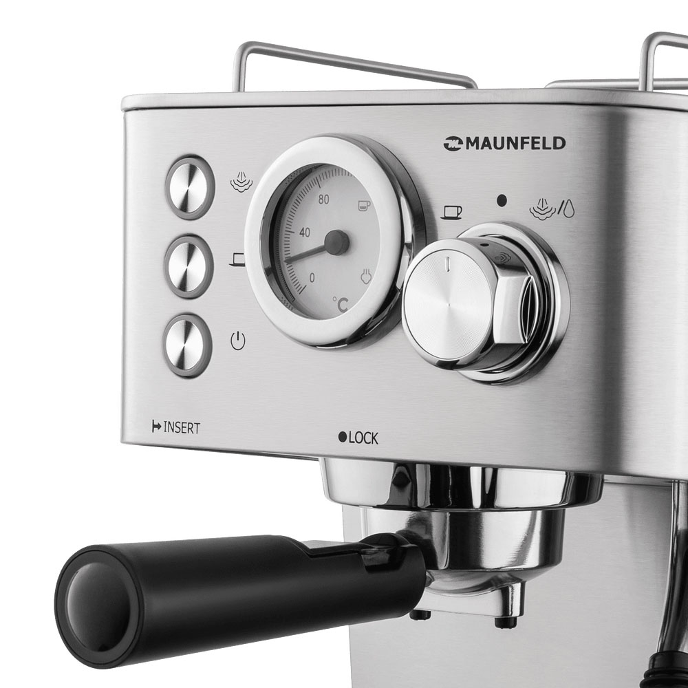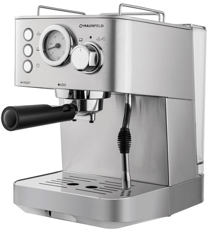 В данном приборе Маунфилд для нагрева воды используется бойлер — в нем постоянно поддерживается необходимая для приготовления температура, поэтому скорость варки кофе достаточно высокая. Единственный недостаток — после перерыва в работе требуется некоторое время, чтобы заново нагреть весь объем воды. Простое и понятное управление — дополнительное преимущество модели. Производители разместили на корпусе кнопочные / поворотные переключатели.