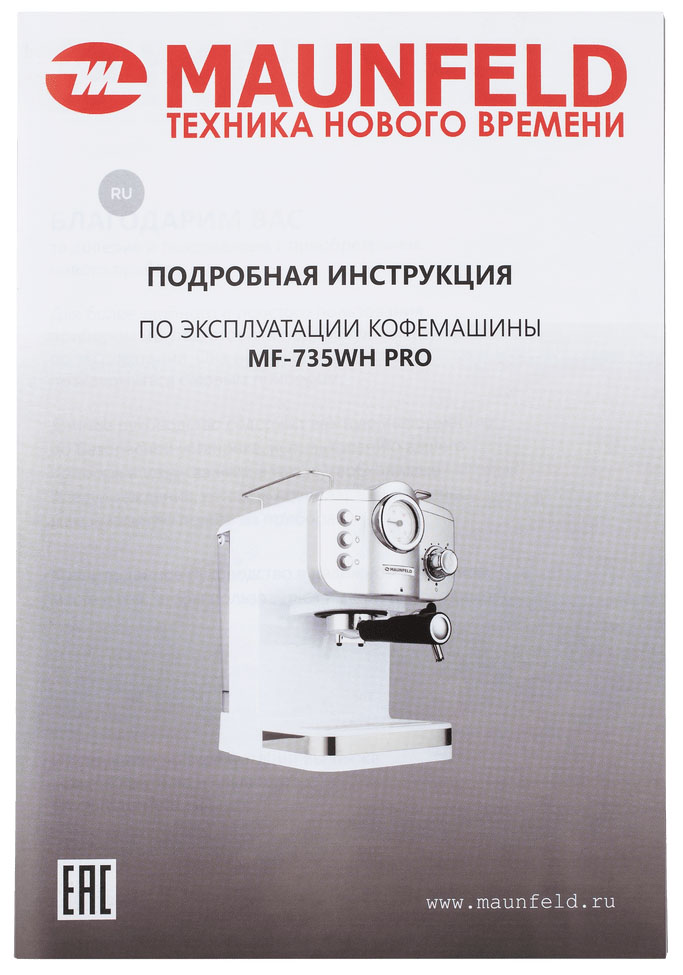 В модели Maunfeld MF-735WH PRO используется молотый кофе: экспериментируйте с сырьем крупного и среднего помола, чтобы добиться идеального вкуса. Данная рожковая кофемашина предназначена в основном для приготовления эспрессо и капучино; благодаря быстрой работе и отсутствию кофейной взвеси в чашке она востребована как в быту, так и в офисах.