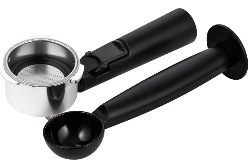 Рожок в рожковых кофемашинах всегда изготавливается из металла и пластика. Рожок, он же портафильтр или холдер, представляет собой фильтродержатель с ручкой, основной элемент конструкции рожковой кофемашины. Молотый кофе помещается в рожок, уплотняется, после чего он закрепляется в варочной группе машины. Стальные массивные рожки хорошо сохраняют температуру и позволяют готовить напитки высокого качества. В машинах для дома рожок часто изготавливается из пластика или комбинации пластика и металла — такая конструкция отличается меньшей прочностью, но на вкус напитка почти не влияет.