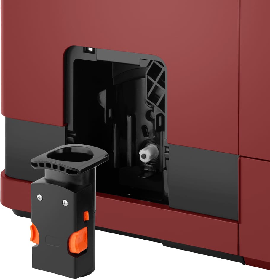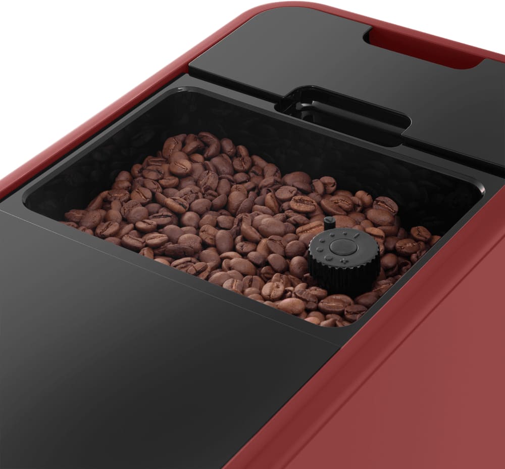 Визуальные характеристики кофемашины играют важную роль при выборе. Цвет корпуса этой модели — красный. Основной материал поверхности — нержавеющая сталь / пластик.
