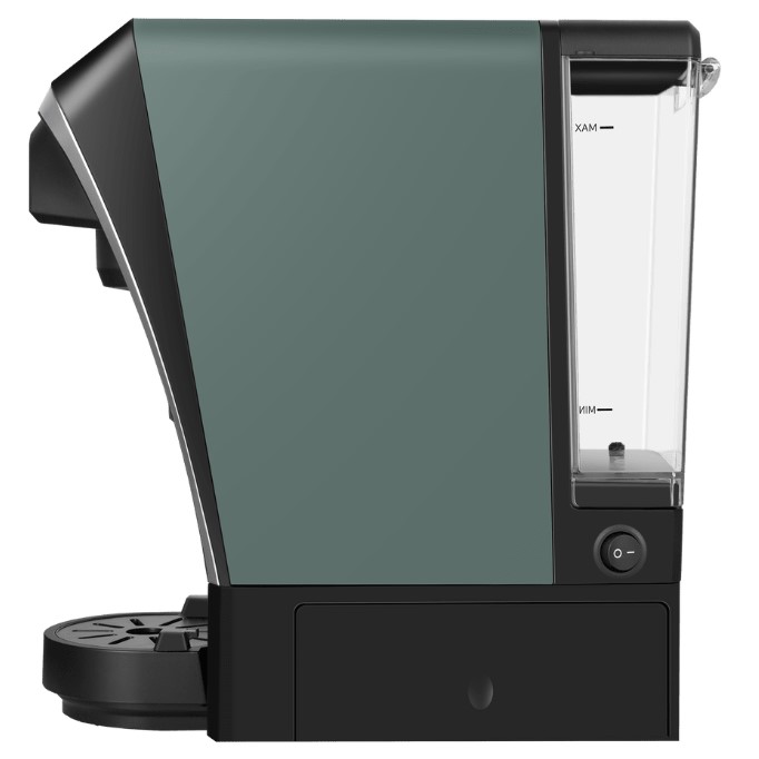 Визуальные характеристики кофемашины играют важную роль при выборе. Цвет корпуса этой модели — зеленый. Основной материал поверхности — пластик.