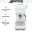 Кофемашина Smeg ECF02PGEU — это сочетание элегантного дизайна и функциональности. Стиль 50-х годов в ее оформлении придает ей шарм и уникальность, а пастельно-зеленый цвет корпуса, выполненного из пластика, делает ее ярким акцентом в любом интерьере. Рожок из металла гарантирует прочность и долговечность, а переключатели, выполненные в форме кнопок и поворотных элементов, обеспечивают удобство использования.