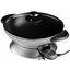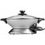Электрический вок с возможностью варить супы и варенье, тушить овощи, мясо. Представляет собой устойчивую электрическую сковороду весом 5,5 кг с округлым дном, очень стильную и функциональную. Такая конструкция является традиционной для азиатской кухни, но по сути она универсальна. Модель поддерживает 15 режимов работы с регулировкой температуры от 40 до 218 градусов. Основная ее составляющая — шестилитровая чаша из алюминия, который быстро прогревается и хорошо поддерживает температуру. Многослойное антипригарное покрытие с уникальным составом Eterna™ не стирается и не портится со временем. Оно совершенно безопасно и не выделяет при нагревании вредных веществ. Съемная чаша надежно фиксируется на основании, легко моется в посудомоечной машине и очень проста в уходе. Быстрое приготовление обеспечивает нагревательный элемент мощностью 2000-2400 Вт, который нагревает всю поверхность чаши целиком. Механический поворотный регулятор для выбора режима находится на основании устройства. Максимальная мощность HIGH SEAR—"Высокая степень обжарки" — используется для обжаривания нарезанного мяса, рыбы и овощей при постоянном помешивании. Самый низкий уровень нагрева может применяться для поддержания температуры готовых блюд. В комплекте лопатка для перемешивания и стеклянная крышка с регулируемым выходом пара.