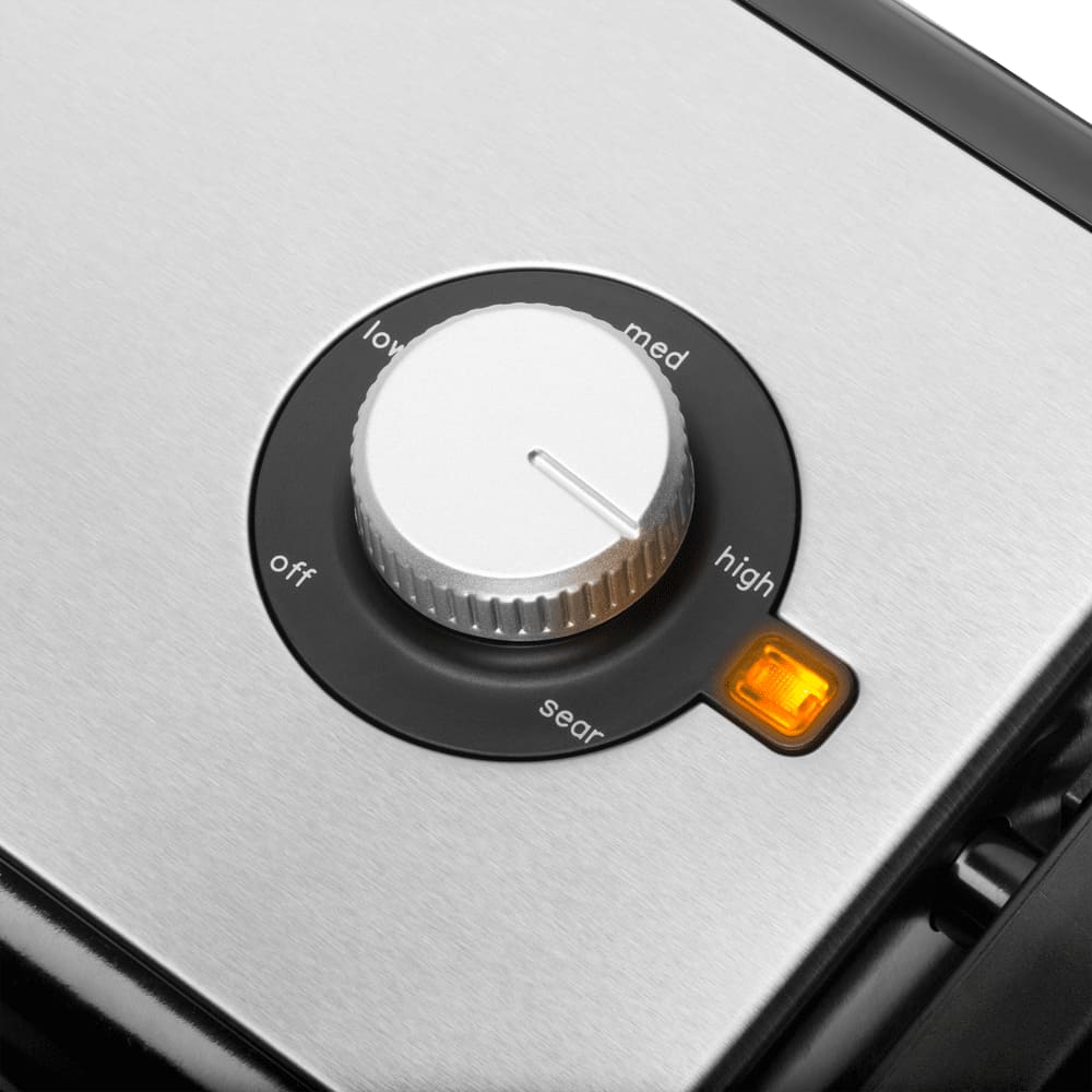Дизайн модели выдержан в современной эстетике — строгие формы, минималистичный силуэт и нейтральная цветовая гамма позволяют органично вписать устройство в любой интерьер, не нарушая гармонии пространства. Благодаря небольшой глубине, гриль не выступает за пределы столешницы, экономя полезную площадь.