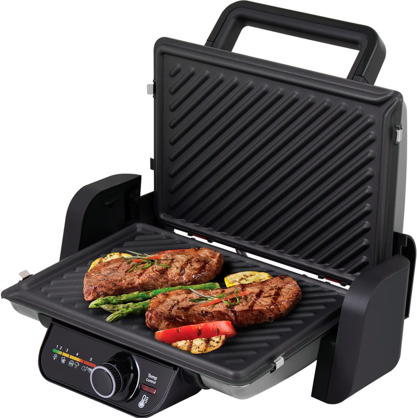 Основная функция агрегата — гриль, позволяющий готовить сочные стейки, овощи, сэндвичи, рыбу и даже тосты с аппетитной поджаристой корочкой. Благодаря равномерному распределению тепла и точному контролю нагрева, продукты прожариваются деликатно, сохраняя соки и натуральный аромат.