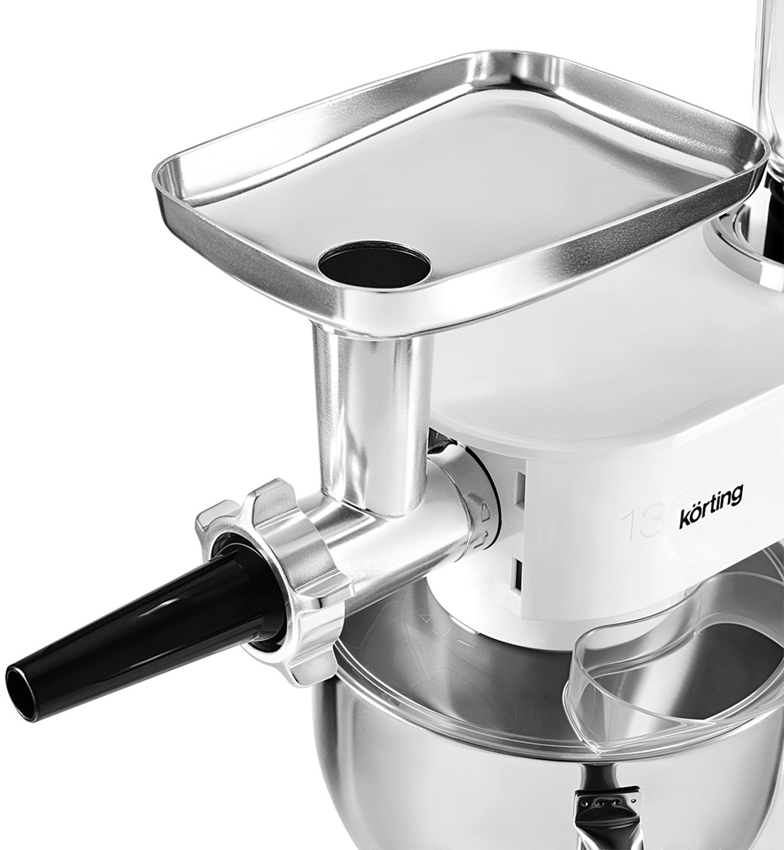 Насадки кухонного комбайна: насадка смешиватель, насадка-блендер, насадка-мясорубка с 3 дисками из нержавеющей стали, насадка для приготовления колбас разного диаметра, насадка для приготовления кеббе