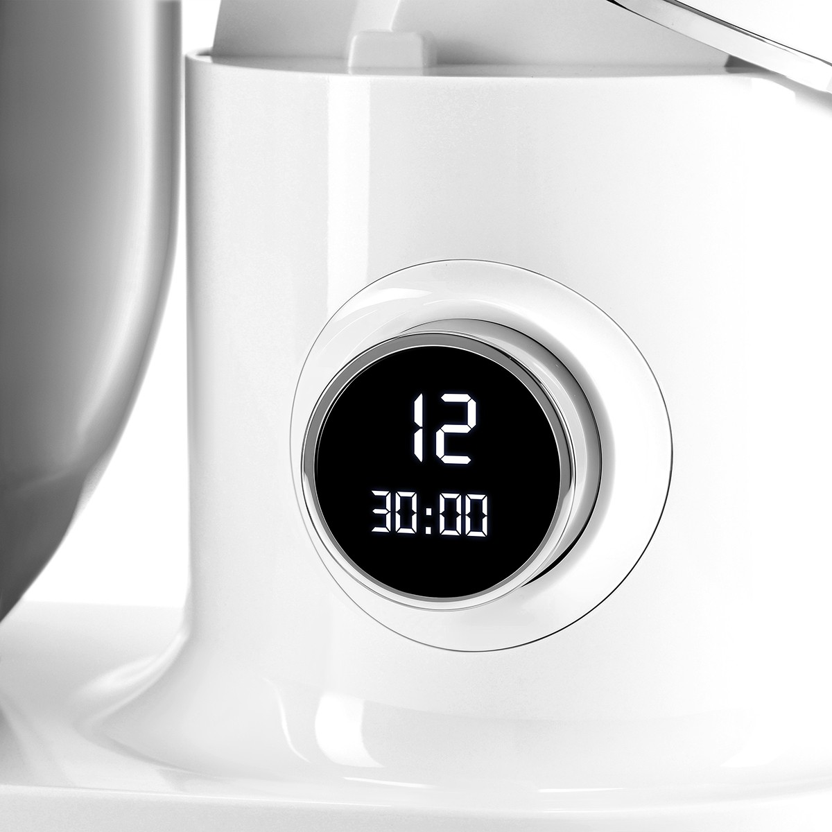 Несмотря на внушительные возможности, устройство остаётся удобным в использовании. После готовки металлическая чаша и аксессуары легко моются вручную или в посудомоечной машине. Компактное размещение на столешнице и элегантный дизайн делают его не только функциональным, но и декоративным элементом кухни.