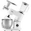 Особое внимание уделено безопасности: модель оснащена защитным щитком, который предотвращает разбрызгивание ингредиентов и защищает пользователя от контакта с движущимися элементами во время работы. Эта функция особенно полезна при обработке жидких или полужидких смесей, а также при длительном замесе плотных масс.