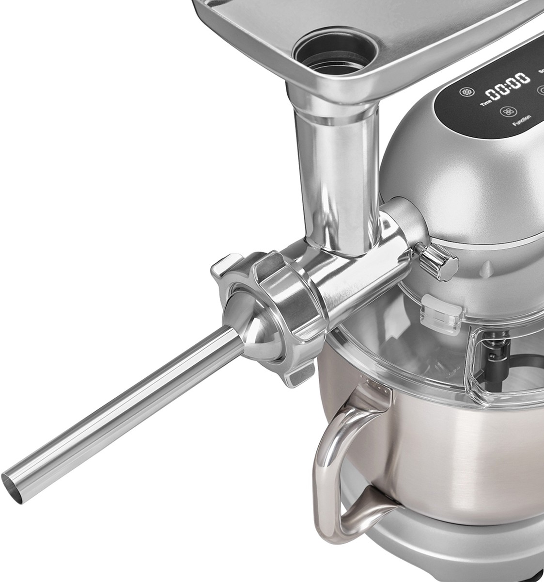 Насадки кухонного комбайна: насадка смешиватель, насадка-мясорубка с 3 дисками из нержавеющей стали, насадка для приготовления колбас разного диаметра