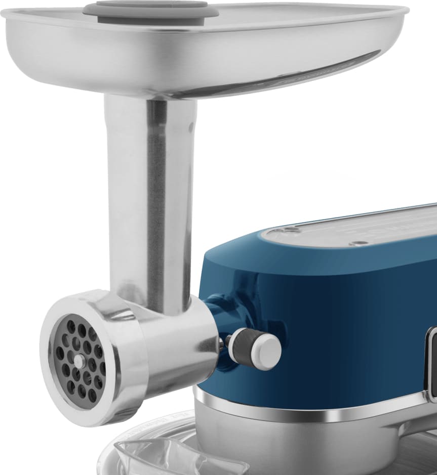 Насадки в комплекте: насадка для колбас / сосисок, 3 решетки для мясорубки, 3 решетки для лапшы, лопатка для смешивания