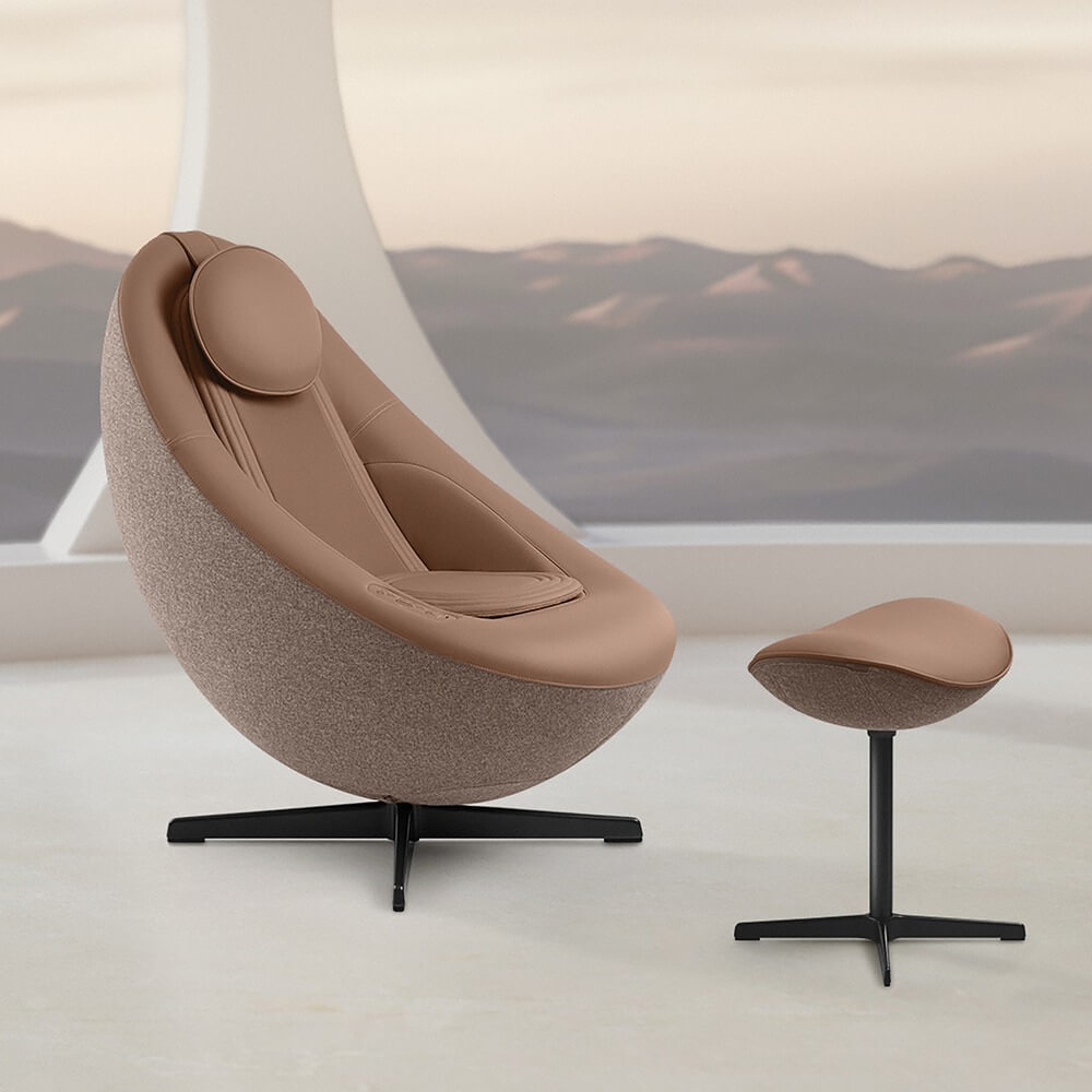 Массажное кресло выполнено в корейском интерьерном дизайне — оно идеально вписывается в обстановку. Удобная панель управления на подлокотнике с возможностью зарядки телефона и запуска музыки.