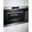 AEG KMR721000M — встраиваемая микроволновая печь с откидной дверцей. Фасад из нержавеющей стали имеет защитное покрытие от отпечатков пальцев Anti Finger-Print. Камера очень большого объема 46 литров с внутренним покрытием из нержавеющей стали позволяет готовить блюда для большой семьи и приема гостей. Наружная сторона дверцы Safe to Touch plus не нагревается свыше 30°С и не позволит обжечься при касании. Технология приготовления пищи без поворотного стола обеспечивает равномерное распространение микроволн по всему пространству камеры. Максимальная мощность микроволн составляет 1000 Вт, регулировка позволяет выбрать один из 10 уровней мощности.