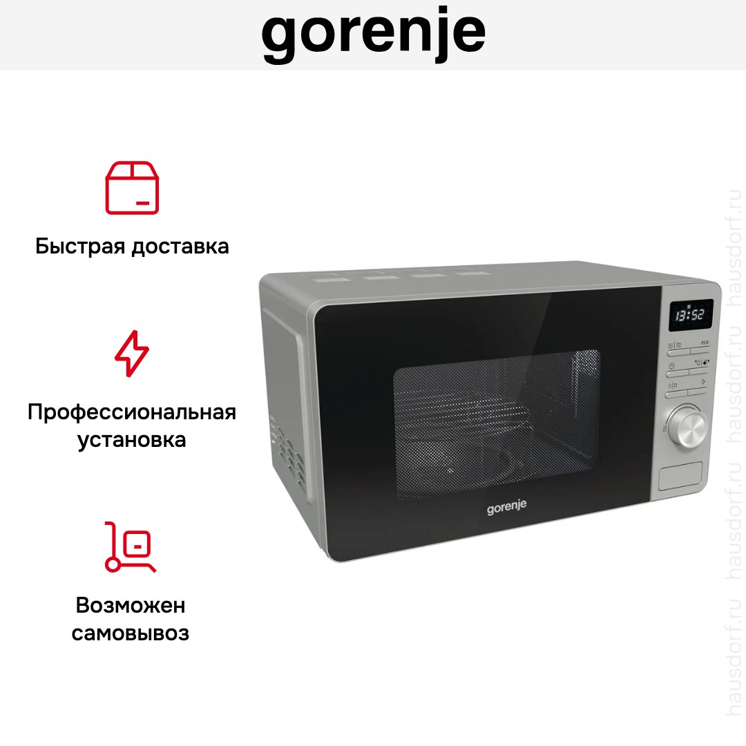 Отдельностоящая микроволновая печь Gorenje MO23A4X — компактное и полезное дополнение к уже имеющейся кухонной технике. Ее можно установить на шкаф, на свободную столешницу, но не рекомендуется ставить на другие приборы, например, холодильник. Цвет этой модели: нержавеющая сталь.