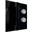 Микроволновые печи могут иметь навесную или откидную дверцу. Модели с навесной дверцей, запирающейся на механические защелки, могут быть как встраиваемыми, так и отдельно стоящими. Такие СВЧ-печи с дверцей, открывающейся влево или вправо, могут относиться к любой категории цен: от самых простых и дешевых до премиальных моделей. Недостатки дверцы с петлями сбоку — выступающая ручка, которая затрудняет очистку фасада, и небольшой угол открытия не более 90 градусов, который может препятствовать, например, размещению прибора в углу. Если ручка действительно мешает, стоит выбрать модель, дверца которой открывается нажатием на кнопку или прикосновением к сенсору на боковой панели управления.