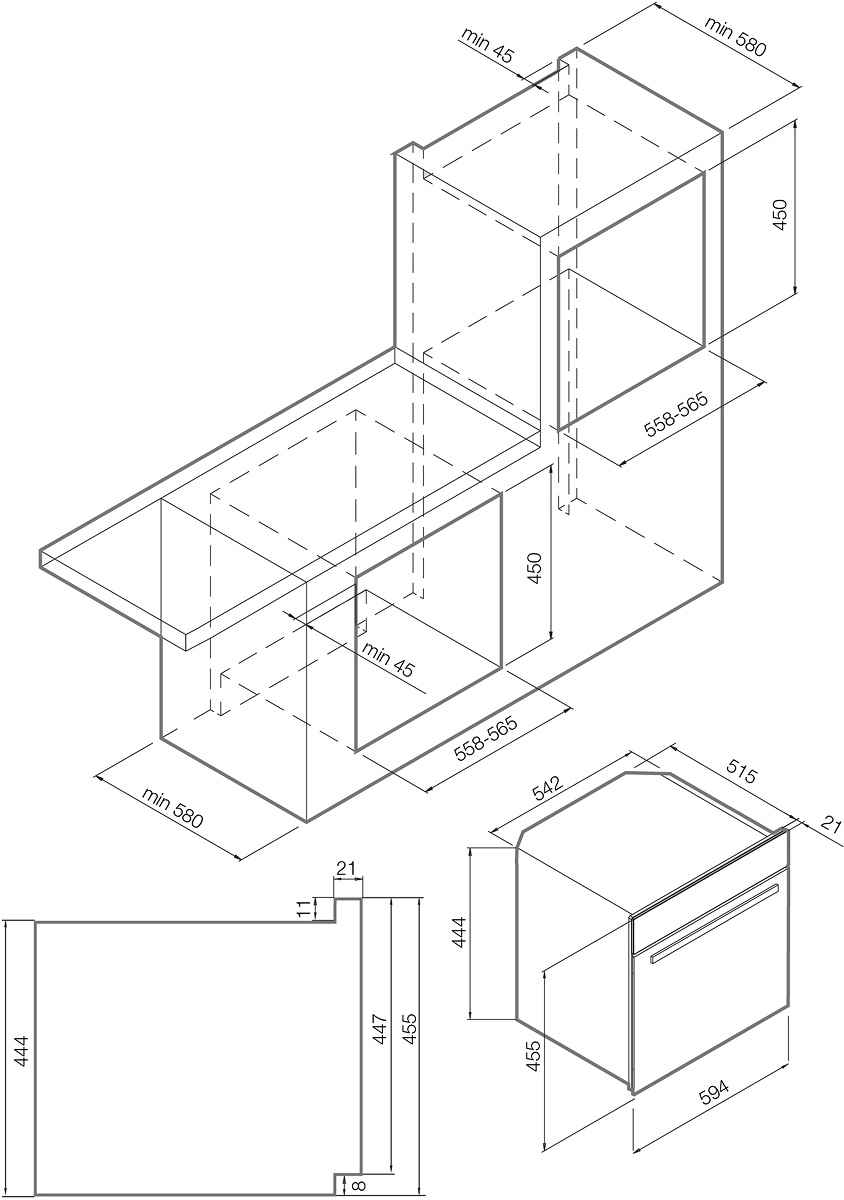 Глубина микроволновой печи —параметр, наиболее сильно влияющий на объем камеры и на диаметр вращающегося стеклянного блюда. Отдельно стоящие микроволновки соло, а также приборы, оснащенные грилем, имеют глубину от 35 до 45 см. При их установке на столешнице следует учитывать, в какую сторону и насколько широко будет открываться дверца. Глубина микроволновки, которая встраивается в кухонную мебель, также варьируется в широком диапазоне. Для полноразмерных моделей с откидной или навесной дверцей она может составить около 52-55 см, а для менее вместительных приборов — порядка 32-35 см.