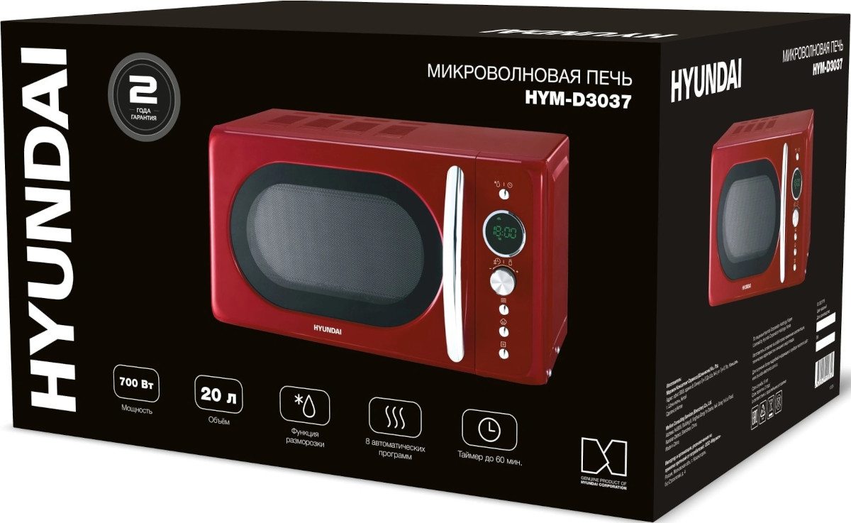 Отдельностоящая микроволновая печь Hyundai HYM-D3037 — компактное и полезное дополнение к уже имеющейся кухонной технике. Ее можно установить на шкаф, на свободную столешницу, но не рекомендуется ставить на другие приборы, например, холодильник. Цвет этой модели: красный.