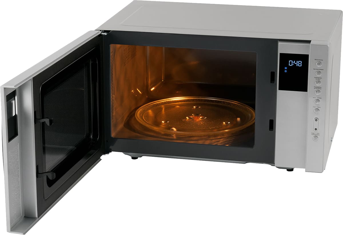 Конвекционный вентилятор устанавливается в микроволновках без поворотного стола: равномерное распределение горячего воздуха позволяет размещать в камере сразу несколько блюд. Комбинация вентилятора и верхнего гриля называется турбогрилем: этот режим очень хорош для выпечки больших пирогов и кексов. Сочетание гриля и конвекции подойдет и для приготовления больших кусков мяса или целой птицы и рыбы. Добавление традиционного нижнего нагревательного элемента превращает микроволновую печь в аналог полноценной духовки: с ее помощью можно готовить, разогревать и размораживать, запекать и томить, обжаривать и тушить.